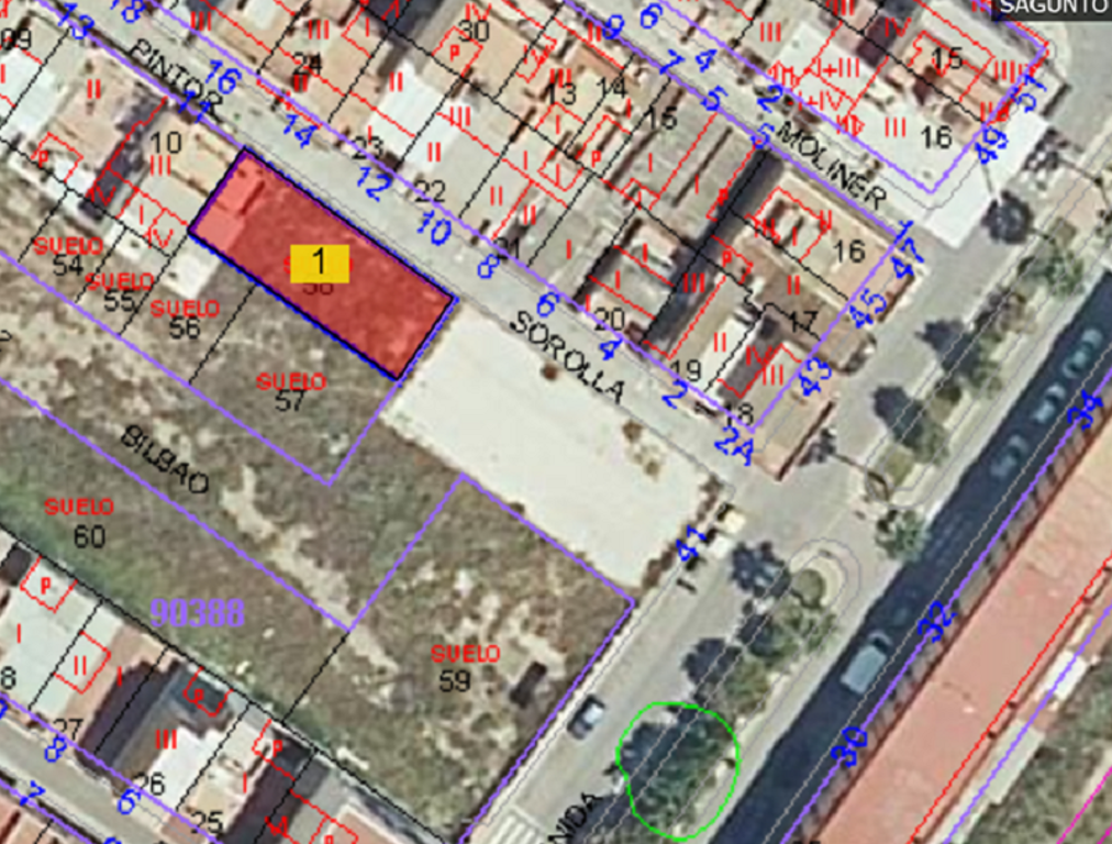 En venta el 5,53 % de suelo urbano de 184,25 m2 de superficie y edificabilidad de 679 m2t en UE PGOU PRI Plaza Bilbao de Puerto de Sagunto, Calle Pintor Sorolla 9. Parcela M1.1 de la reparcelación.