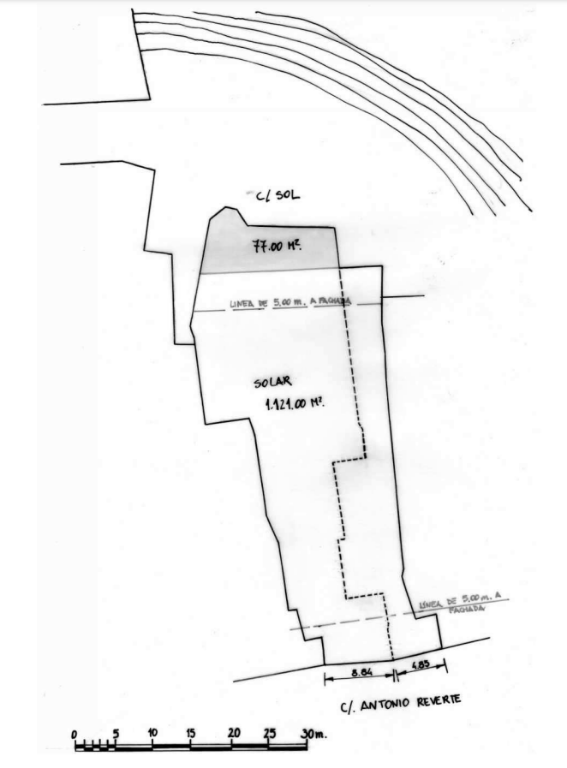 1 solar de 1198 m2. Uso mayoritario residencial, de 2556 m2 de edificabilidad total, y con un máximo de 25 viviendas.